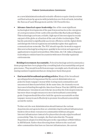 Reforming FCC policies to focus on core functions, improve accountability, and modernize operations will better support economic growth, enhance national security, and foster a more resilient and dynamic communications infrastructure. These reforms align with conservative principles of free markets, reduced government intervention, and personal responsibility, ensuring that America’s communications policies continue to promote prosperity and freedom.